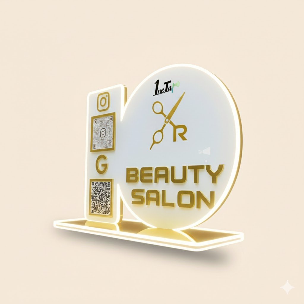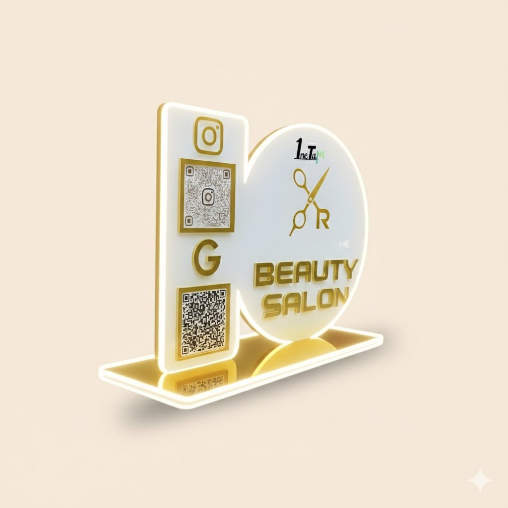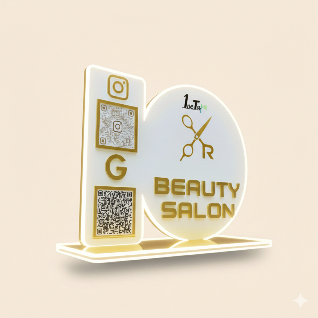 Enhance your salon or beauty parlour experience with our Smart NFC Double QR Tabletop Standee. Featuring two QR codes, it allows clients to instantly access your services, book appointments, and connect with your social profiles—all with a single tap. Stylish, modern, and eye-catching, this standee not only elevates your counter’s look but also makes client engagement effortless, professional, and unforgettable.