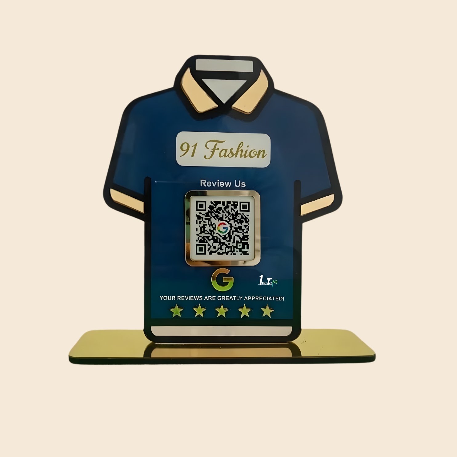 T-Shirt Shaped NFC & QR Smart Standee Scan to Elevate Your Style
