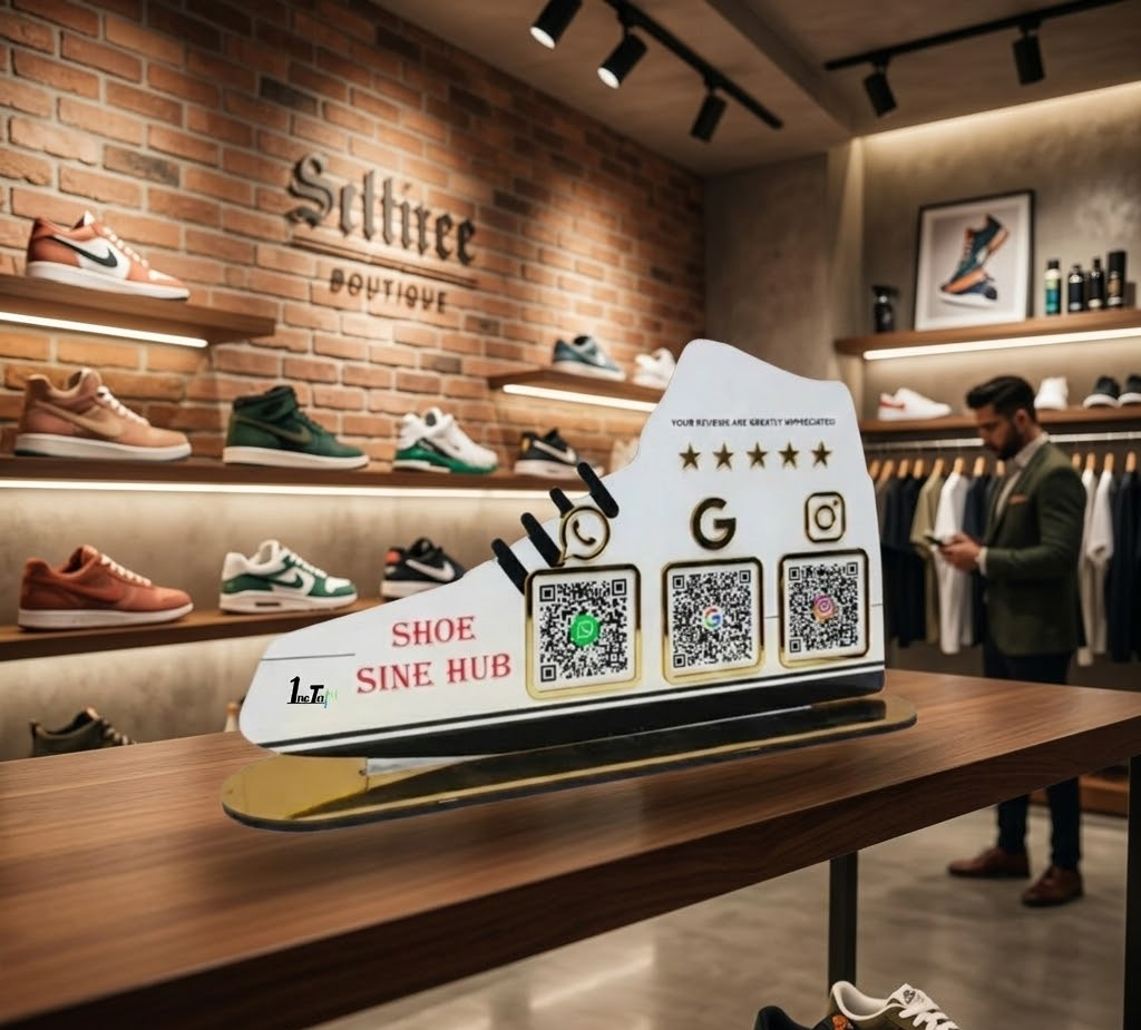 The 3-in-1 QR Standee in Shoes Design is a creative and eye-catching display specially designed for footwear stores and fashion promotions. Shaped like a stylish shoe, this standee instantly grabs attention while offering space for three QR codes. Customers can easily scan the codes to explore product catalogs, special offers, online stores, or social media pages. Made with durable materials and high-quality printing, the standee is lightweight, easy to place, and perfect for shoe shops, retail outlets, exhibitions, and promotional events. 👟📱✨